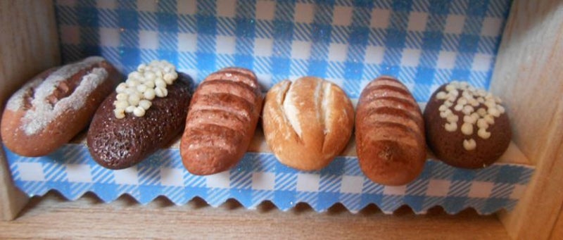 Een miniatuurkraam vol met brood en broodjes! De een nog lekkerder dan de andere. Elk broodje - en natuurlijk de kraam zelf - is zelfgemaakt.