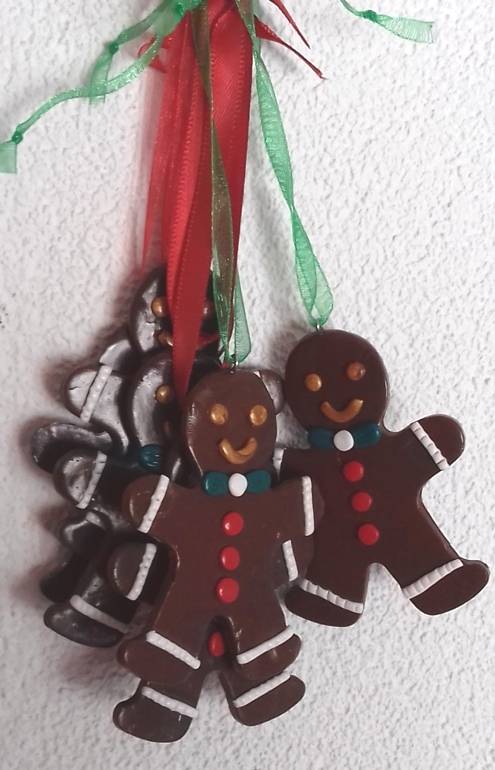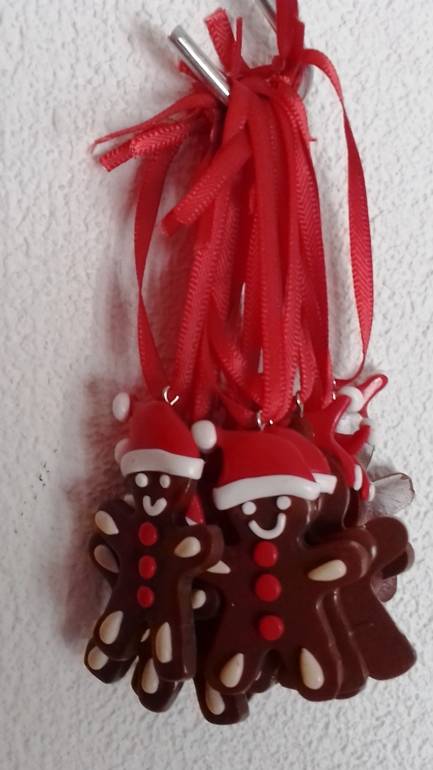 Koekenman Hangers: allemaal gemaakt om met hun felrode linten aan de kerstboom te hangen!